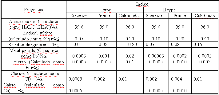 Carácter: monoclínico incoloro o cristal de prisma o polvo blanco, oxidación oxálica